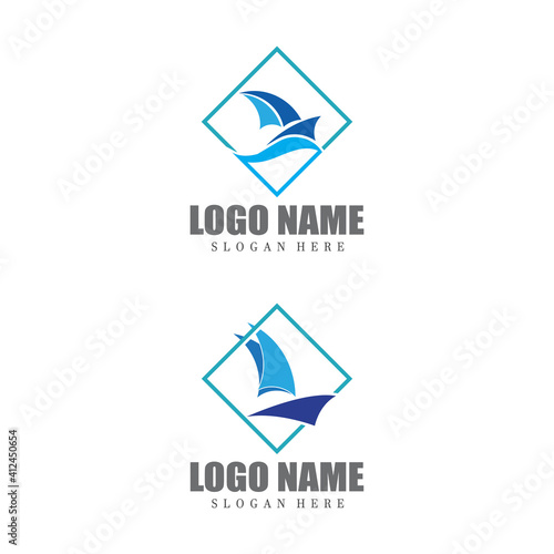 Fototapeta premium Ocean cruise liner ship silhouette simple linear logo