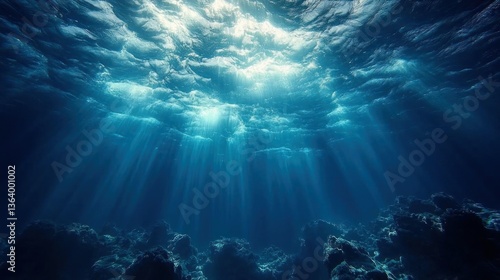 Fototapeta premium Ocean Depths Sunlight Rays Underwater Scene