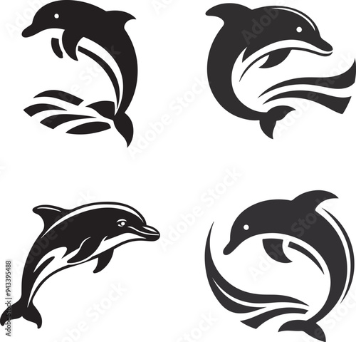 © JR Shoron, Fototapeta premium ocean dolphin collection playful vector logo