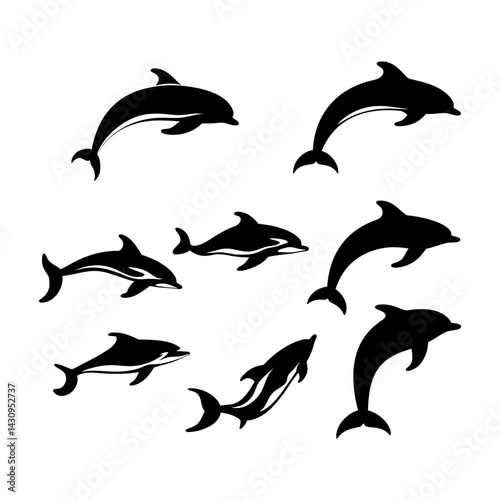 © fijulanam468, Fototapeta premium Ocean Dolphin Silhouette for Marine Themes