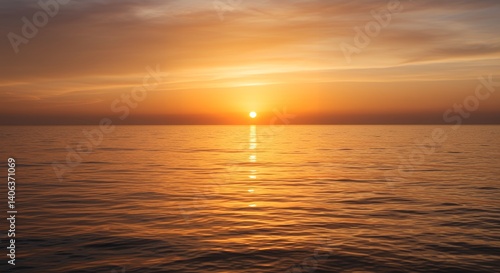 © Farid Nisuki, Fototapeta premium Ocean Horizon at Sunset with Golden Light Reflection