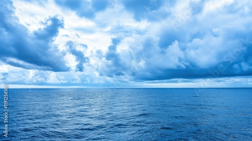 Obraz premium Ocean Horizon Underneath Cloudy Blue Sky
