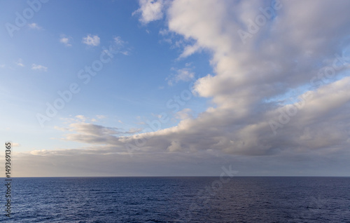 © edb3_16, Obraz premium Ocean Horizon With Dramatic Clouds Under a Clear Blue Sky