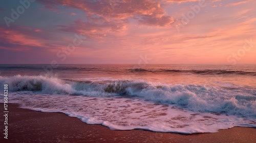 © Vivi, Fototapeta premium Ocean horizon with dreamy pink and orange skies,