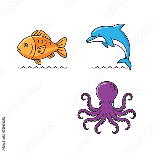Fototapeta premium Ocean life Fish, dolphin, octopus characters