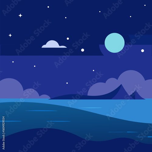 Fototapeta premium Ocean night sky with full moon beautiful landscape background.