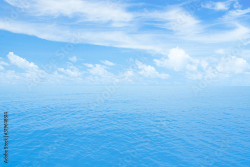 Obraz premium Ocean or sea calm water. Horizon line with partly cloud sky.
