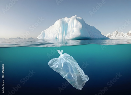 © Gustav, Obraz premium Ocean Pollution: A Plastic Bag's Journey in a Frozen Landscape