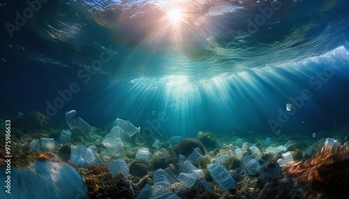Fototapeta premium Ocean Pollution and Hope – Surreal Plastic Waste Visualization