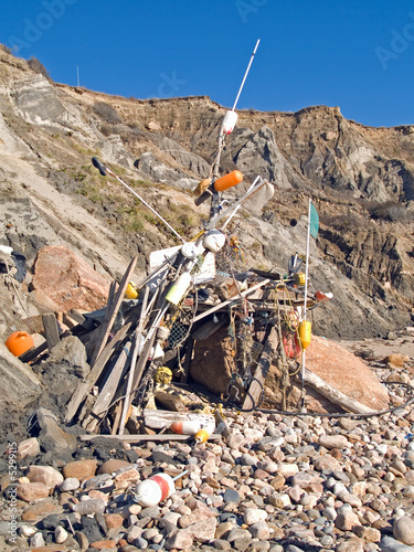 Obraz premium Ocean pollution - shack built out of trash found on the beach