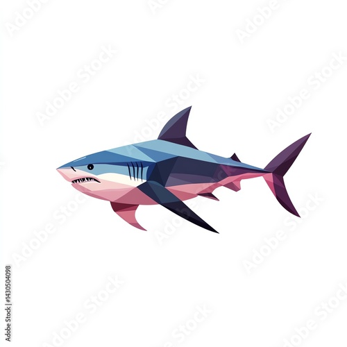 © Priyanut, Obraz premium Ocean Predator A Stunning Polygonal Shark Design, Graceful Movement and Sharp Details. White Background.