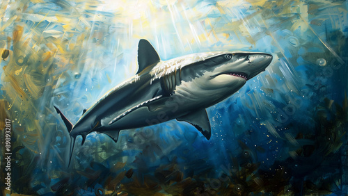 Fototapeta premium Ocean’s Apex: Profile View of a Swimming Shark