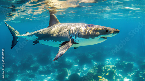Obraz premium Ocean shark Underwater blue sea waves clear water shark swims forward