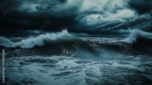 Obraz premium Ocean Storm: Powerful Waves Crashing Under Dark Clouds