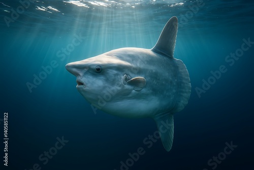 Naklejka premium Ocean sunfish Mola mola swimming near sunlit surface of open ocean in photorealistic scene