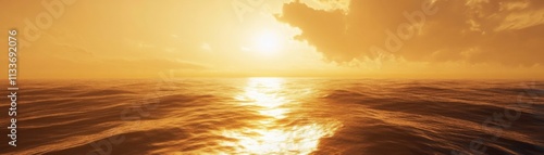 © Priyanut, Fototapeta premium Ocean sunset, golden hues, calm waves.