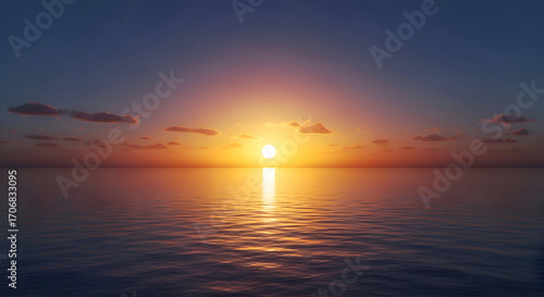 Naklejka premium Ocean Sunset Reflection with Calm Water