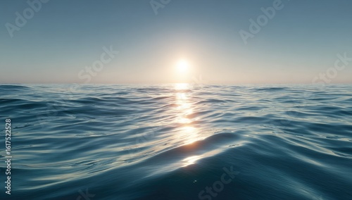 © Mandiri, Obraz premium Ocean sunset view, calm waves reflecting light
