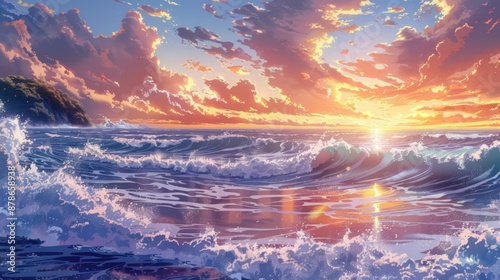 Fototapeta premium Ocean Sunset with Clouds