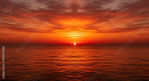 © Abeto_21, Obraz premium Ocean Sunset with Fiery Sky and Water Reflections for Nature Background