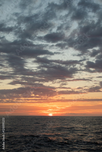 Naklejka premium Ocean Sunset with Vibrant Sky and Clouds