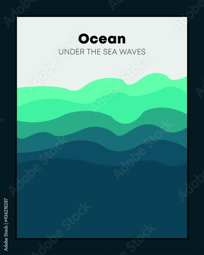 © Aditya Agustian yp, Fototapeta premium Ocean under blue sea waves background pattern flat vector