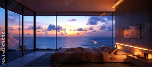 Fototapeta premium Ocean View Bedroom at Sunset