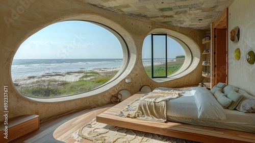 Fototapeta premium Ocean View Bedroom in Modern Coastal Home
