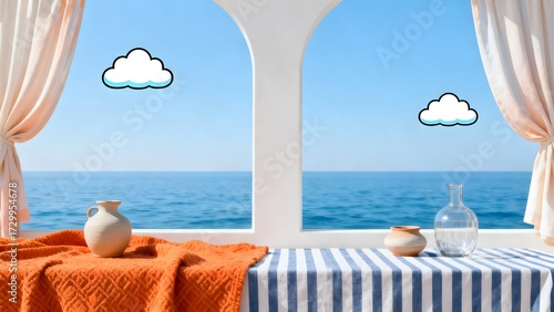 © PhuongNhung, Obraz premium Ocean view through arched window