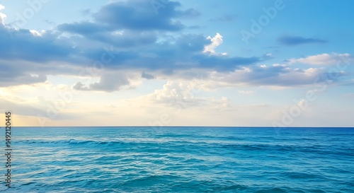 © Muhammad, Obraz premium Ocean View with Blue Water and Clouds