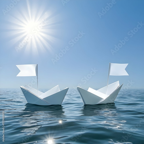 Obraz premium Ocean Voyage: 3D Render of Paper Boats