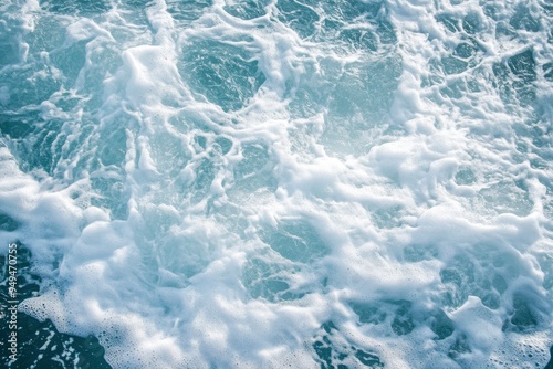 © Dzikrul Husnani, Obraz premium Ocean water background with foam. Ocean water splash. Not a calm , ai