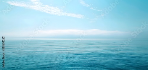 © Almultazam, Obraz premium ocean water surface with cloudy blue sky.