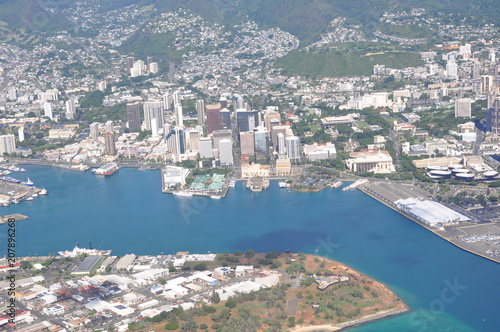 © girings studio, Naklejka premium ocean water with town upper view