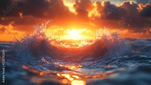 Fototapeta premium Ocean wave sunrise splash dramatic sky