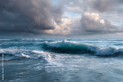 Fototapeta premium Ocean Wave Under Dramatic Cloudy Sky