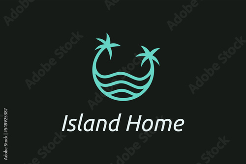 Fototapeta premium Ocean waves and palm tree combined with simple minimalist and modern shapes suitable for logo and icon