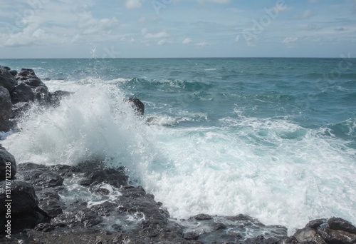 © LucieAliceNova, Fototapeta premium Ocean Waves at Rocky Shoreline