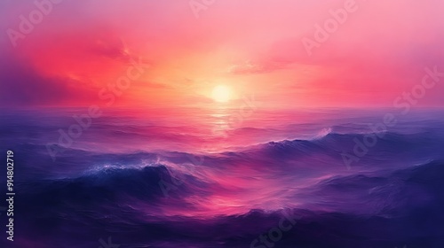 © labirint, Fototapeta premium Ocean waves at sunset under vibrant pink