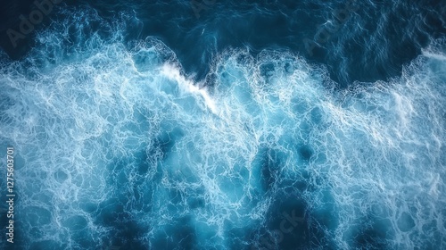 © TITISCAHYA, Fototapeta premium Ocean waves churning, aerial view, background deep blue