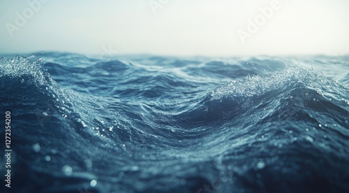 Fototapeta premium Ocean waves, close-up view, tranquil sea, soft light background, digital art