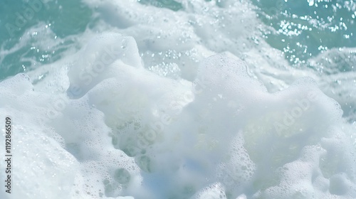 Obraz premium Ocean waves foam closeup, sunny day, sea texture, background for website