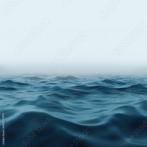 © LIPO@SEXTAO22, Naklejka premium Ocean waves, foggy horizon, drifting mist, 3D illustration