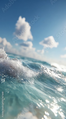 © Sahal, Obraz premium Ocean Waves With Foamy Bubbles And Sunlight Reflections