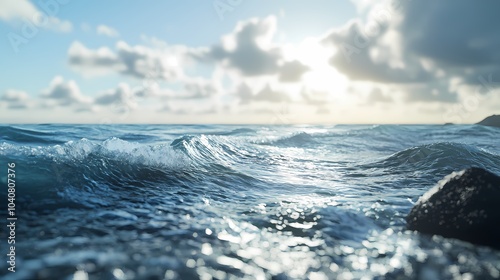 Fototapeta premium Ocean Waves with Sunlight Reflecting on the Water