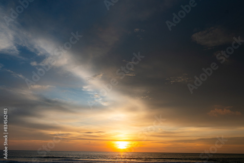 Fototapeta premium ocean with orange sky during sunset, for background purpose.