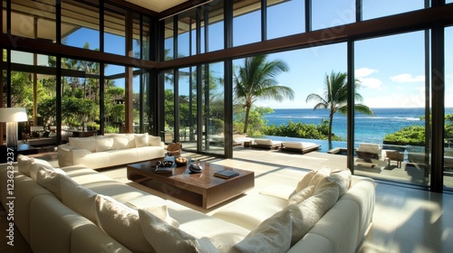 © afif, Fototapeta premium Oceanfront living room luxury home design