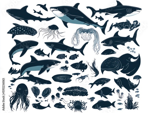 © CUNGKRING, Obraz premium Oceanic creatures silhouettes