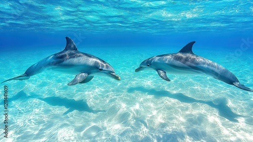 © wisnuromad art, Fototapeta premium Oceanic Dolphins Encounter: A Breathtaking Underwater Scene