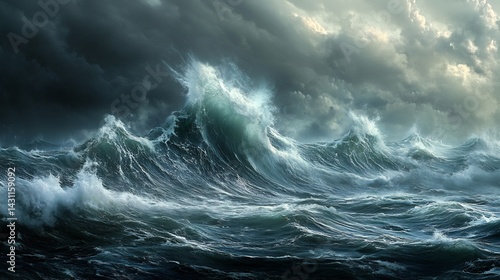 Fototapeta premium Oceanic Storm: Dramatic Waves Under a Turbulent Sky